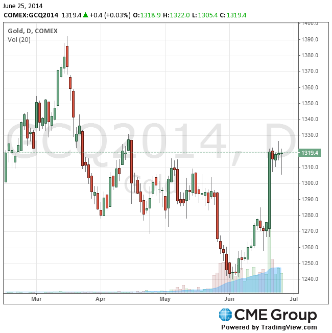 Стоимость августовского фьючерса на золото на COMEX сегодня выросла до $1322.0 за унцию.
