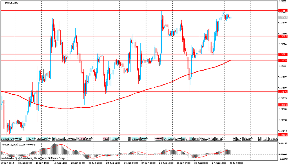 Иена выросла к месячному максимуму против доллара США на фоне роста спроса на валюту-убежище, вызванном запуском Северо-Корейской ракеты и напряженностью в Ираке и Украине. В Украине правительство обвинило пророссийских повстанцев как минимум в 7-микратном нарушение перемирия, в результате чего было убито несколько украинских солдат. На фоне этого Европейский Союз дал России три дня, чтобы повлиять на ситуацию, угрожая введением новых санкций.