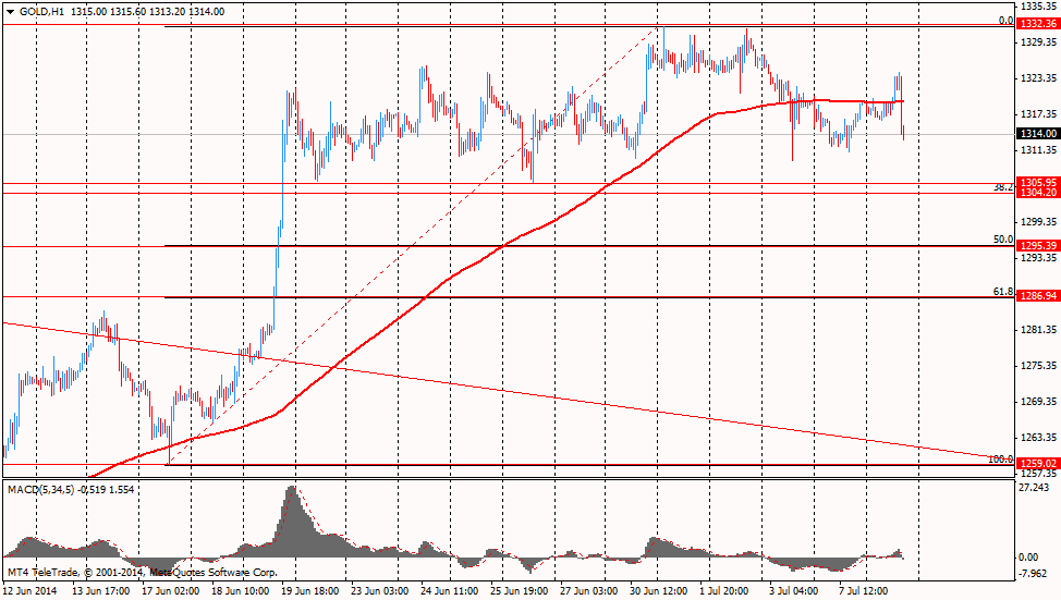 Стоимость августовского фьючерса на золото на COMEX сегодня снизилась до $1314.00 за унцию (-0,22%).