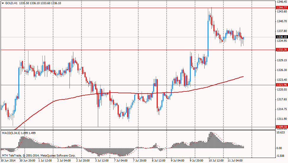 Стоимость августовского фьючерса на золото на COMEX сегодня снизилась до $1336.10 за унцию (-0,18%).