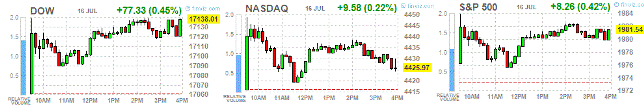 Dow +76.49 17,137.17 +0.45%