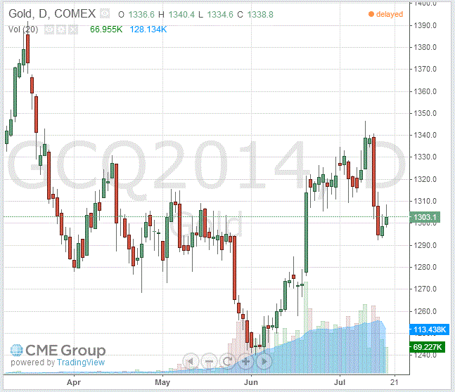 Стоимость августовского фьючерса на золото на COMEX сегодня выросла до $1303.10 за унцию.