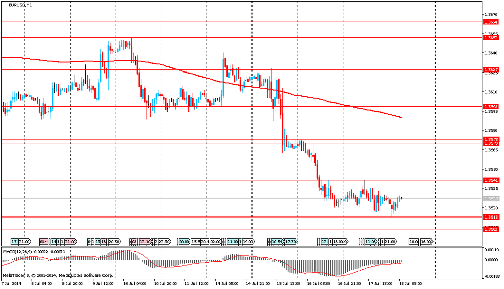 Основными данными пятницы будет отчет по индексу потребительских цен в Канаде (12:30 GMT) и публикация предварительной оценки по индексу потребительских настроений от Reuters/Michigan в США (13:55 GMT). По первому показателю прогнозируется сокращение значения (+0,4 м/м в июне против +0,5%), по второму рост (с 82,5 пункта в июне до 83,5 в июле).