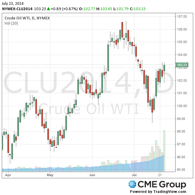 Стоимость сентябрьских фьючерсов на американскую легкую нефть марки WTI (Light Sweet Crude Oil) выросла до $103,30 за баррель на Нью-йоркской товарной бирже (NYMEX).