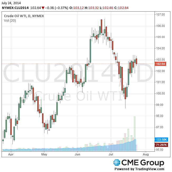 Стоимость сентябрьских фьючерсов на американскую легкую нефть марки WTI (Light Sweet Crude Oil) упала до $102,46 за баррель на Нью-йоркской товарной бирже (NYMEX).