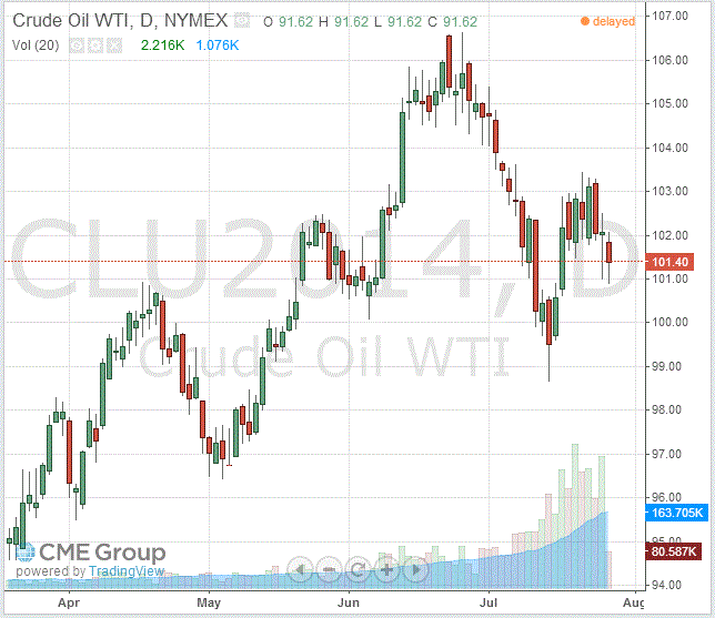 Стоимость сентябрьских фьючерсов на американскую легкую нефть марки WTI (Light Sweet Crude Oil) упала до $101,40 за баррель на Нью-Йоркской товарной бирже (NYMEX).