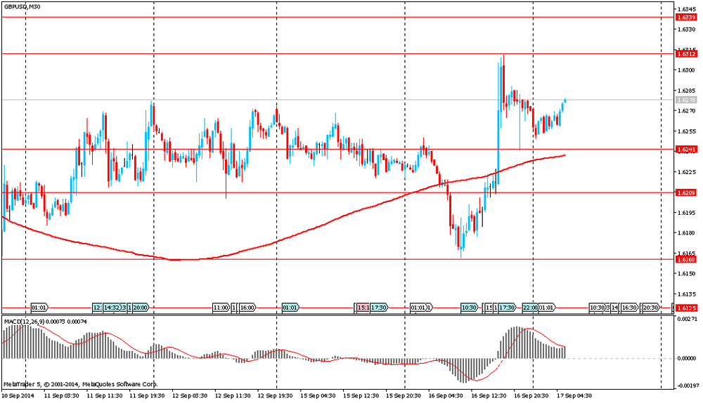 Фунт немного вырос в преддверии сегодняшней публикации протоколов последнего заседания Банка Англии и завтрашнего голосования о независимости Шотландии.