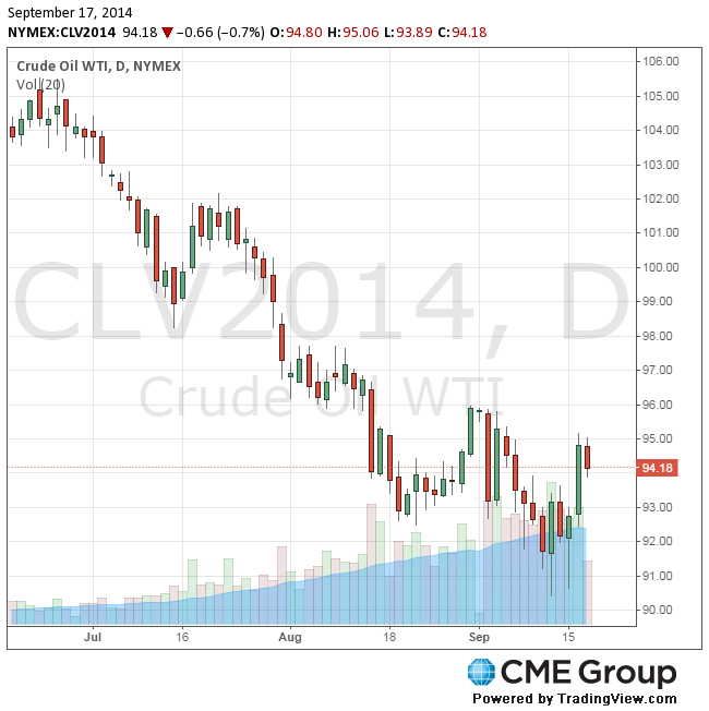 Стоимость октябрьских фьючерсов на американскую легкую нефть марки WTI (Light Sweet Crude Oil) снизилась до $93.89 за баррель на Нью-йоркской товарной бирже (NYMEX).