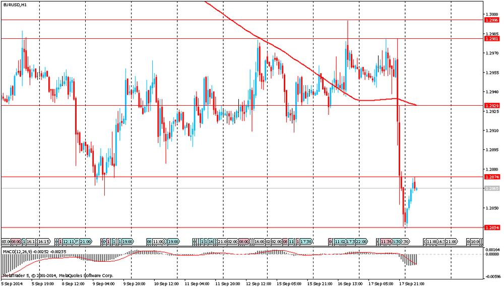 Евро снизился, т.к. ЕЦБ готовится выделить свои первые средства в рамках так называемых целевых долгосрочных операций по рефинансированию. ЕЦБ объявит сегодня о выделение своего первого транша по целевой программе кредитования, чтобы предотвратить дефляцию в еврозоне. Согласно прогнозам аналитиков, банки получат 150 млрд евро ($ 193 миллиарда).