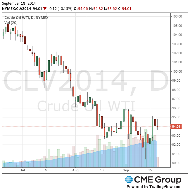 Стоимость октябрьских фьючерсов на американскую легкую нефть марки WTI (Light Sweet Crude Oil) снизилась до $93.62 за баррель на Нью-йоркской товарной бирже (NYMEX).