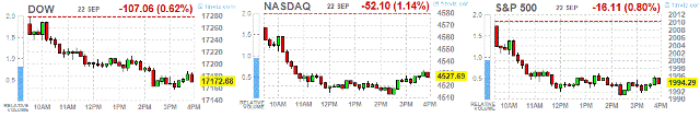 Основные фондовые индексы США упали. Самое сильное падение продемонстрировали небольшие компании. Катализатором сегодняшней динамики стало падение продаж домов в США и заявления министра финансов Китая по стимулированию экономики Поднебесной.