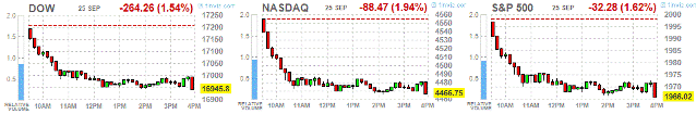 Фондовые индексы США зафиксировали существенное падение. Давление на индексы оказали акции корпорации Apple, которые упали, в связи с недовольством потребителей новым смартфоном iPhone6 и озабоченностью из-за действий России в отношении зарубежных активов.