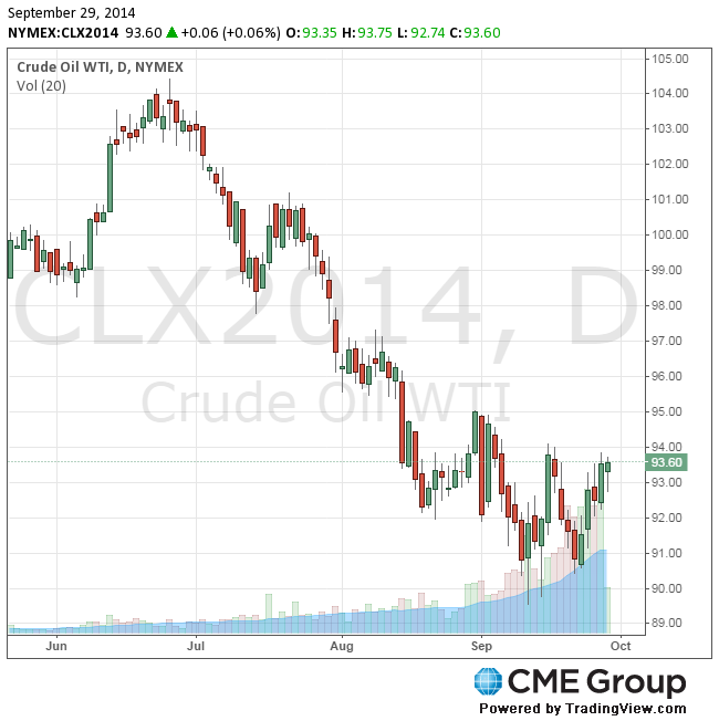 Стоимость ноябрьских фьючерсов на американскую легкую нефть марки WTI (Light Sweet Crude Oil) выросла до $93.75 за баррель на Нью-йоркской товарной бирже (NYMEX).