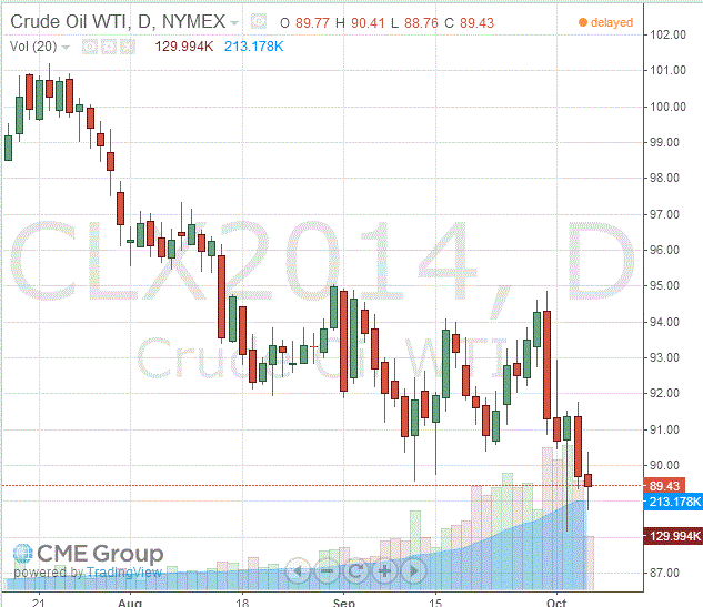 Стоимость ноябрьских фьючерсов на американскую легкую нефть марки WTI (Light Sweet Crude Oil) снизилась до $89,43 за баррель на Нью-йоркской товарной бирже (NYMEX).