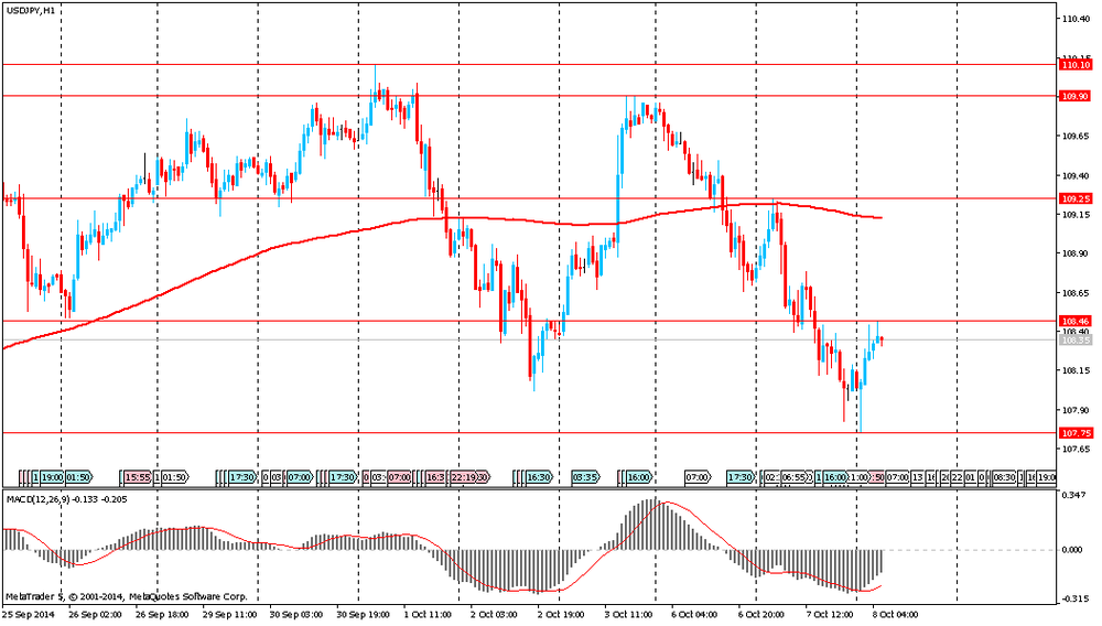 Иена торговалась около одномесячного максимума против евро после того, как Международный валютный фонд снизил свой глобальный прогноз по росту мировой экономики, повышая тем самым спрос на валюту-убежище. По мнению МВФ, рост мировой экономики в 2014 году упадет до 3,3% с 3,4% и в 2015 году - до 3,8% с 4%. Однако эксперты отмечают, что, несмотря на откаты назад, неустойчивое глобальное оздоровление продолжается. В развитых странах, по оценке МВФ, ожидается некоторое подоражанее темпов роста. При этом специалисты Фонда прогнозируют рост ВВП США в 2014-2015 годах на 2,2% и 3,1%, соответственно, а еврозоне - 0,8% и 1,3%.
