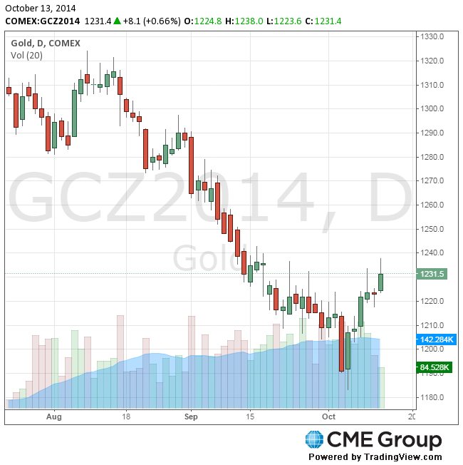 Стоимость декабрьского фьючерса на золото на COMEX сегодня выросла до 1238.00 долларов за унцию.