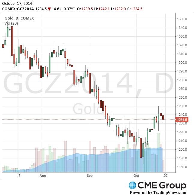Стоимость декабрьского фьючерса на золото на COMEX сегодня упала до 1232.00 долларов за унцию.