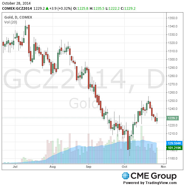 Стоимость декабрьского фьючерса на золото на COMEX сегодня выросла до 1235.50 долларов за унцию.