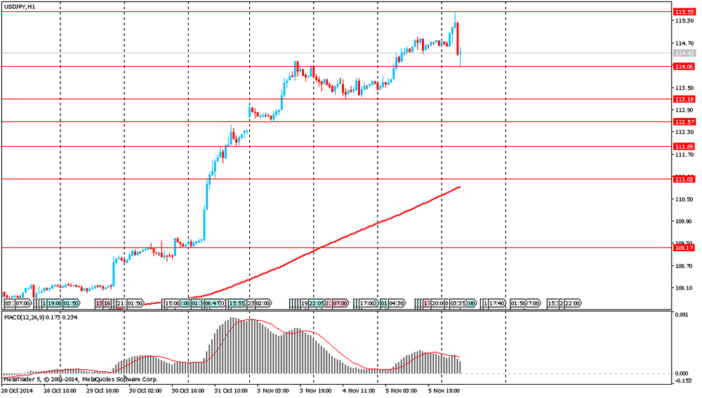 Иена упала, преодолев отметку Y115 за доллар впервые за семь лет после вчерашнего выступления главы Банка Японии Харухико Куроды. Управляющий ЦБ заявил, что монетарное стимулирование производит ожидаемый эффект. Также Курода объявил о готовности и далее проводить новое стимулирование экономики, чтобы полностью преодолеть инфляцию. "Не считаю, что инструменты для дальнейшего смягчения ограничены. Чтобы полностью преодолеть инфляцию, лекарства необходимо принимать до конца" - заявил управляющий Банка Японии.