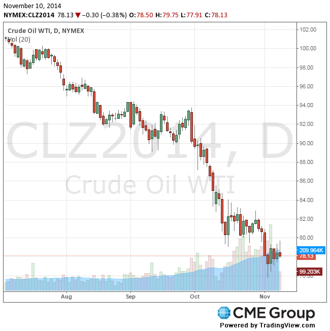 Стоимость декабрьских фьючерсов на американскую легкую нефть марки WTI (Light Sweet Crude Oil) упала до 77,91 доллара за баррель на Нью-Йоркской товарной бирже.