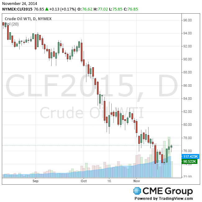 Стоимость январских фьючерсов на американскую легкую нефть марки WTI (Light Sweet Crude Oil) выросла до $77,02 за баррель на Нью-Йоркской товарной бирже.