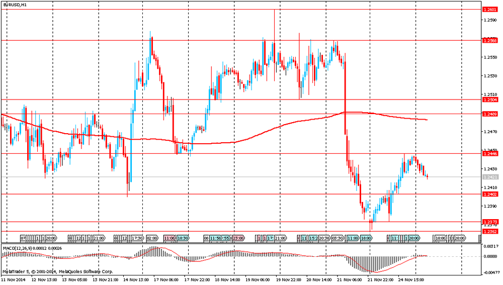 EUR/USD: в ходе азиатской сессии пара упала к $1.2418