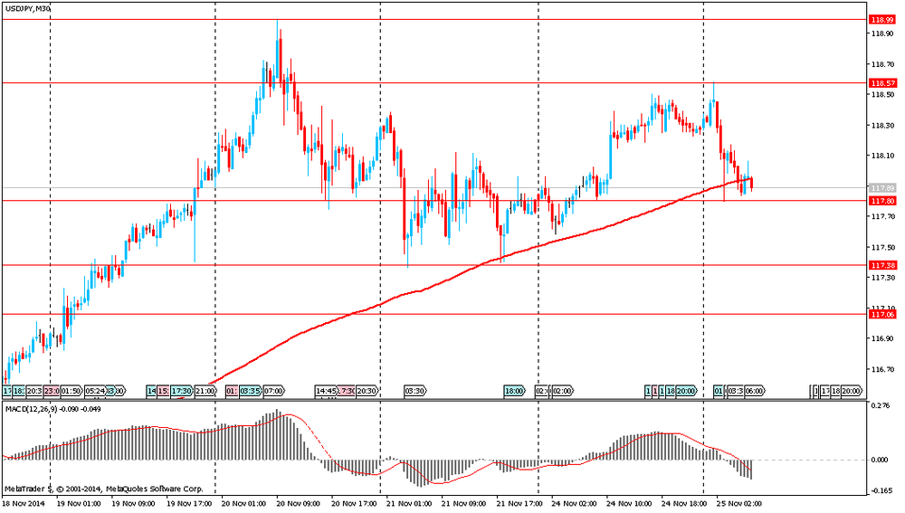 Помимо этого, сегодня был опубликован протокол последнего заседания банка Японии. Из документа стало известно, что четыре члена правления Банка Японии подвергли сомнению предложение управляющего центрального банка Куроды увеличить меры смягчения на заседании 31 октября. Они заявили, что дополнительные действия могут принести экономике больше вреда, чем пользы. Напомним, по итогам заседания 31 октября правление Банка Японии удивило мировые рынки, решив увеличить объем средств, который центральный банк вливает в банковскую систему, до 80 трлн иен в год (676 млрд долларов США). Это решение было принято с незначительным перевесом: пятью голосами "за" против четырех голосов "против". Четырьмя членами, не поддержавшими решение Банка Японии, стали Кодзи Исида, Ёсихиса Моримото, Такехиро Сато и Такахиде Киути.