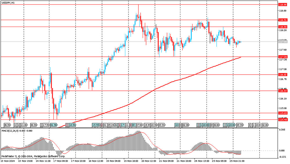 Иена продолжает торговаться около семилетнего минимума по отношению к доллару США после того, как член правления Банк Японии Саюри Сираи заявила, что она поддерживает дополнительный денежно-кредитный стимул центрального банка. Выступая сегодня в Хиросиме, она отметила важность продолжения денежно-кредитного смягчения для достижения целевого уровня инфляции 2%. Помимо этого, Сираи заявила, что сохраняет мнение о том, что инфляция приблизится к 2% в конце 2015 финансового года.