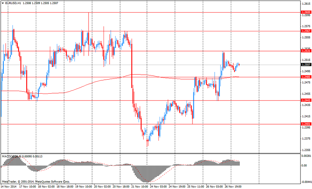 В 08:55 GMT Германия сообщит об изменении числа безработных и уровне безработицы за ноябрь. Немного позже (в 09:00 GMT) еврозона объявит об изменении агрегата М3 денежной массы за октябрь. В 12:00 GMT Германия представит опережающий индекс потребительского климата за декабрь, а в 13:00 GMT - выпустит предварительный индекс потребительских цен за ноябрь. Затем в 13:30 GMT Канада отчитается по сальдо расчетного счета платежного баланса за III квартал. В 21:45 GMT Новая Зеландия заявит об изменении объема выданных разрешений на строительство за октябрь. Последней отчитается Япония - в 23:30 GMT станет известно об изменении объема уровня расходов домохозяйств за октябрь, а также выйдут индексы потребительских цен за октябрь и потребительских цен Токио за ноябрь. В 23:50 GMT Япония опубликует предварительные данные по объемам промышленного производства и розничной торговли за октябрь.