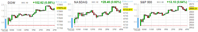 Основные фондовые индексы США выросли по итогам сегодняшних торгов, чему помогали ожидания расширения стимулирующих мер центробанками Китая и Европы.