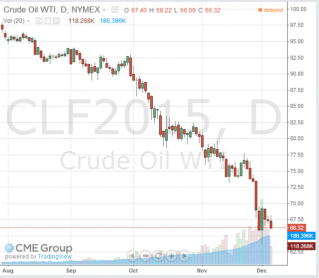 Стоимость январских фьючерсов на американскую легкую нефть марки WTI (Light Sweet Crude Oil) упала до $66,32 за баррель на Нью-Йоркской товарной бирже.
