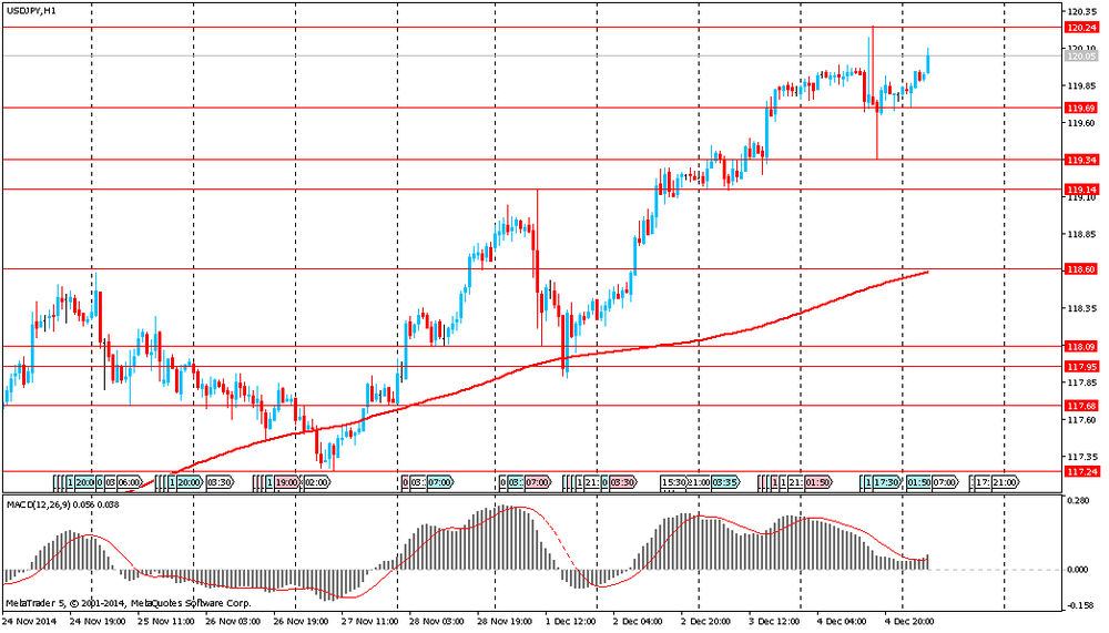 Доллар закрывает ростом уже седьмую неделю подряд, поднявшись против иены выше уровня Y120 впервые с июля 2007 года. Рынок замер в ожидание позитивного отчета по занятости в США, запланированного на сегодня. Согласно среднему прогнозу экономистов, 5 декабря Министерство труда США отчитается о росте числа занятых в ноябре на 225 тыс, против 214 тыс в октябре. Напомним, ранее в соответствии с ноябрьским отчетом по занятости от ADP показатель в частном секторе увеличился на 208 тыс рабочих мест с октября по ноябрь. "Данные за ноябрь по-прежнему показывают устойчивый рост рабочих мест свыше 200 000", сказал Карлос Родригес, президент и главный исполнительный директор ADP. "Малые предприятия продолжали наращивать численность персонала, добавив почти половину общей занятости в течение месяца ".
