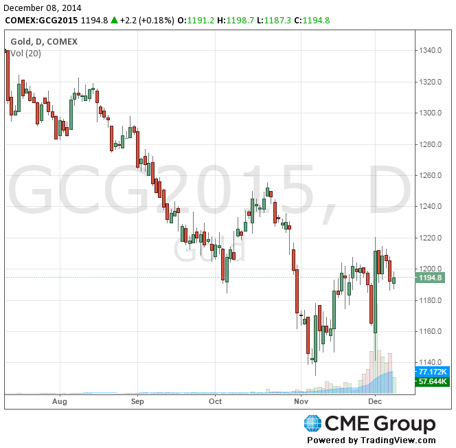 Стоимость февральского фьючерса на золото на COMEX сегодня выросла до 1198.70 долларов за унцию.