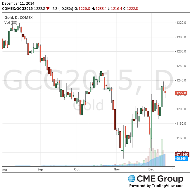 Стоимость февральского фьючерса на золото на COMEX сегодня снизилась до 1216.40 долларов за унцию.