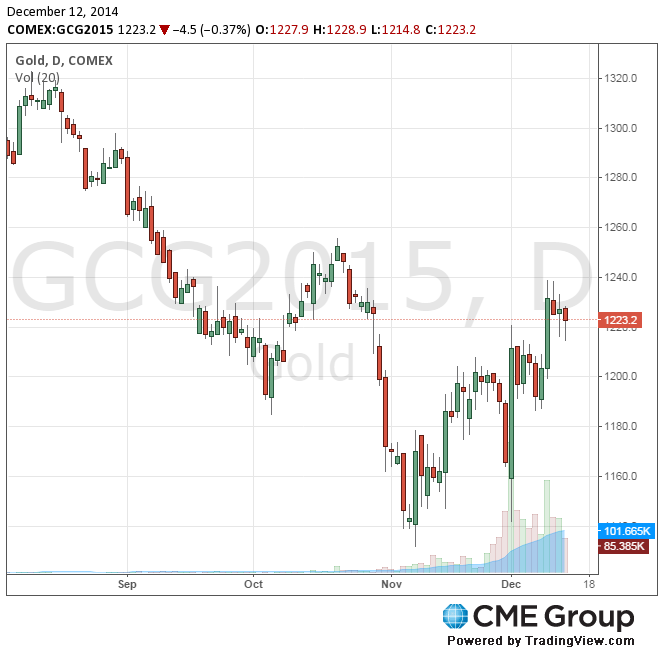 Стоимость февральского фьючерса на золото на COMEX сегодня снизилась до 1214.80 долларов за унцию.