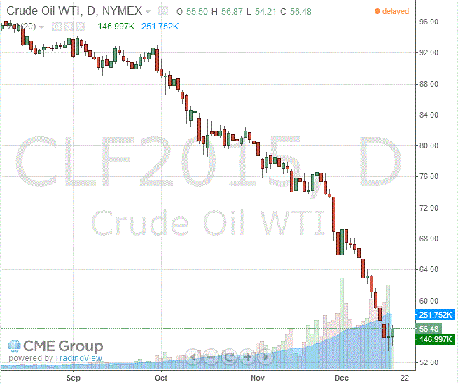 Стоимость январских фьючерсов на американскую легкую нефть марки WTI (Light Sweet Crude Oil) выросла до 56,48 доллара за баррель на Нью-Йоркской товарной бирже.