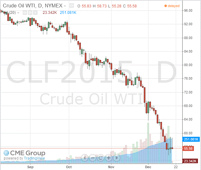 Стоимость январских фьючерсов на американскую легкую нефть марки WTI (Light Sweet Crude Oil) снизилась до $55,58 за баррель на Нью-Йоркской товарной бирже.