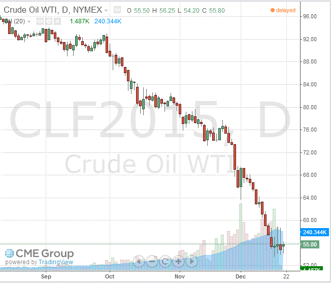 Стоимость январских фьючерсов на американскую легкую нефть марки WTI (Light Sweet Crude Oil) выросла до 55,80 доллара за баррель на Нью-Йоркской товарной бирже.