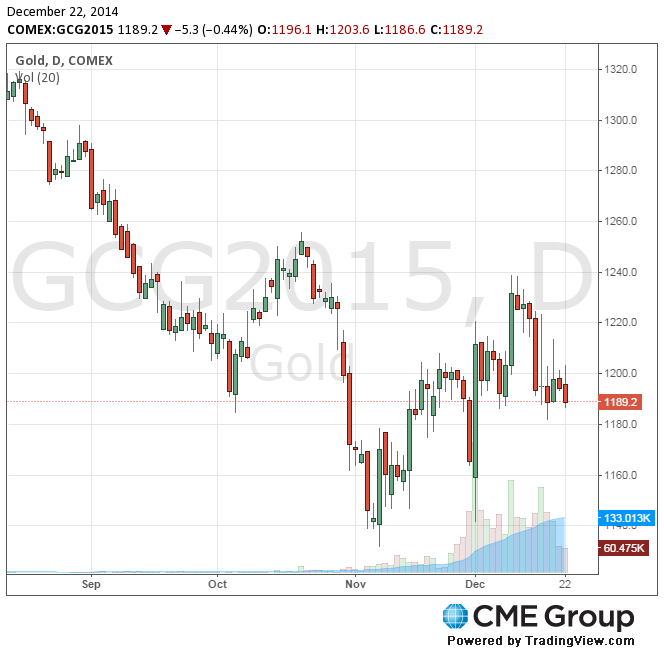 "Вряд ли инвесторы будут выходить на рынок в это время года, но ликвидность столь мала, что если потребуется выполнить какие-нибудь заказы, влияние будет значительным. Мой прогноз на 2015 год очень пессимистичен... Если инвесторы готовы рисковать, и в то же время повышаются доллар и процентные ставки, золото не сможет расти", - сказала аналитик ABN Amro Жоржетта Бёле.