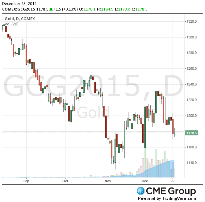 Стоимость февральского фьючерса на золото на COMEX сегодня выросла до 1184.90 долларов за унцию.