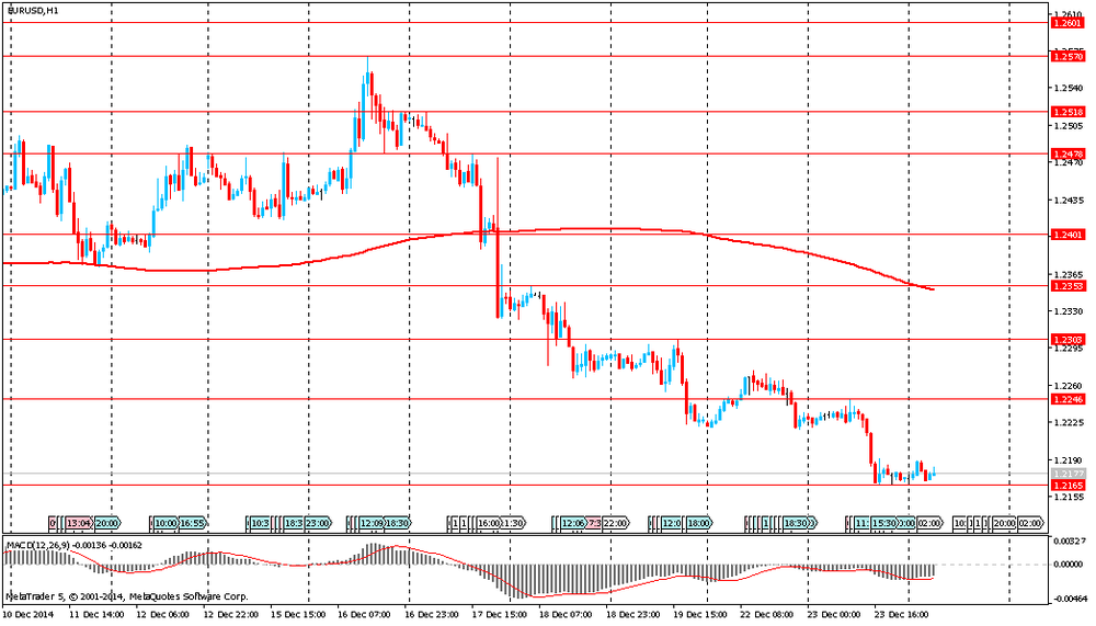 Евро, скорее всего, закроет шестой месяц подряд снижением против доллара США на фоне ожиданий запуска монетарных стимулирующих программ Европейский центральным банком. Помимо этого, дополнительное давление на курс единой валюты оказала вчерашняя неудача премьер-министра Антониса Самараса получить поддержку в парламенте Греции. Последний не смог договориться о новом президенте во втором туре голосования. Кандидат премьера Ставрос Димас получил поддержку только 168 депутатов, то есть не набрав необходимых 180 голосов из 300-местного парламента. Третий и заключительный раунд голосования планируется провести 29 декабря, и если ни один президент не будет избран, то на конец января будут назначены досрочные выборы. Участники рынка опасаются, что левая партия Syriza может выиграть эти выборы, создав таким образом озабоченность по поводу того, будет ли Греция продолжать свою программу по спасению и меры жесткой экономии.