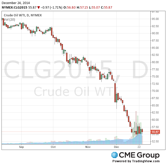 Стоимость февральских фьючерсов на американскую легкую нефть марки WTI (Light Sweet Crude Oil) упала до $55,07 за баррель на Нью-Йоркской товарной бирже.