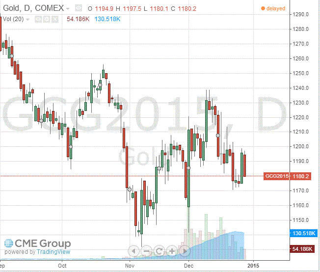 Стоимость февральского фьючерса на золото на COMEX сегодня упала на $14.5 до 1180.20 долларов за унцию.