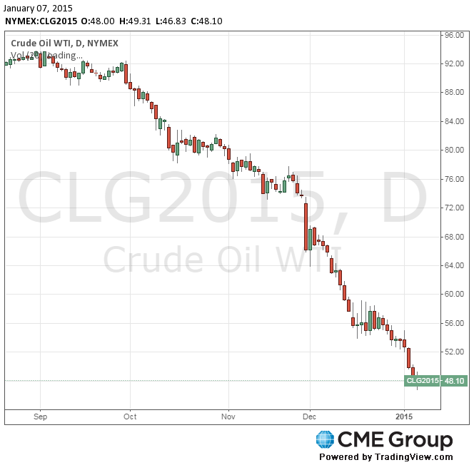 В 2014 году нефть марки Brent обвалилась почти на 48%, в то время как нефть WTI подешевела почти на 46%, после того, как Организации стран-экспортеров нефти решила сохранить без изменений производство на уровне 30 млн баррелей в сутки.