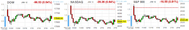 Основные фондовые индексы США умеренно снизились. Сегодня динамику на рынке капитала диктовали продолжающиеся распродажи акций энергетических компаний из-за падения цен на нефть более чем на 4%.