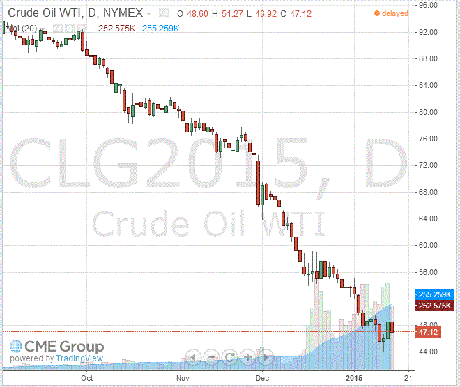 Стоимость февральских фьючерсов на американскую легкую нефть марки WTI (Light Sweet Crude Oil) снизилась до 47,11 доллара за баррель на Нью-Йоркской товарной бирже.