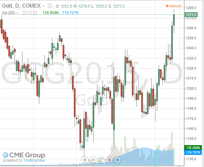 Стоимость февральского фьючерса на золото на COMEX сегодня выросла до 1273.50 долларов за унцию.