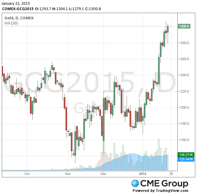 Стоимость февральского фьючерса на золото на COMEX сегодня выросла до 1304.10 долларов за унцию.
