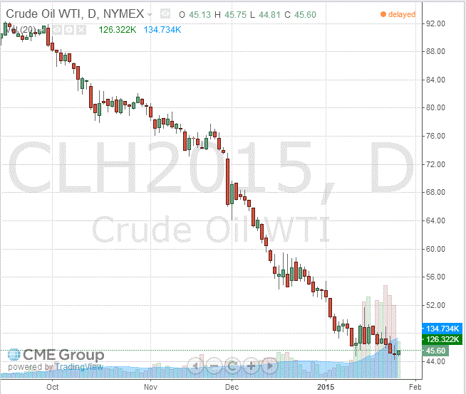 Стоимость мартовских фьючерсов на американскую легкую нефть марки WTI (Light Sweet Crude Oil) выросла до 45,60 доллара за баррель на Нью-Йоркской товарной бирже.