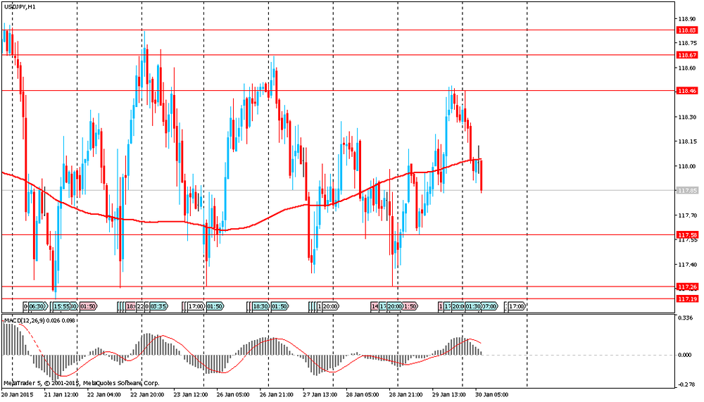Иена выросла по отношению к доллару после публикации данных Бюро статистики Японии. Инфляция в Японии в декабре замедлилась до самого низкого уровня за полтора года под давлением со стороны падающих мировых цен на нефть. Национальный индекс потребительских цен Японии (без учета цен на свежие продукты питания) снизился в декабре на 2.5%, что ниже ожиданий 2.6% и ниже ноябрьского значения 2,7%.